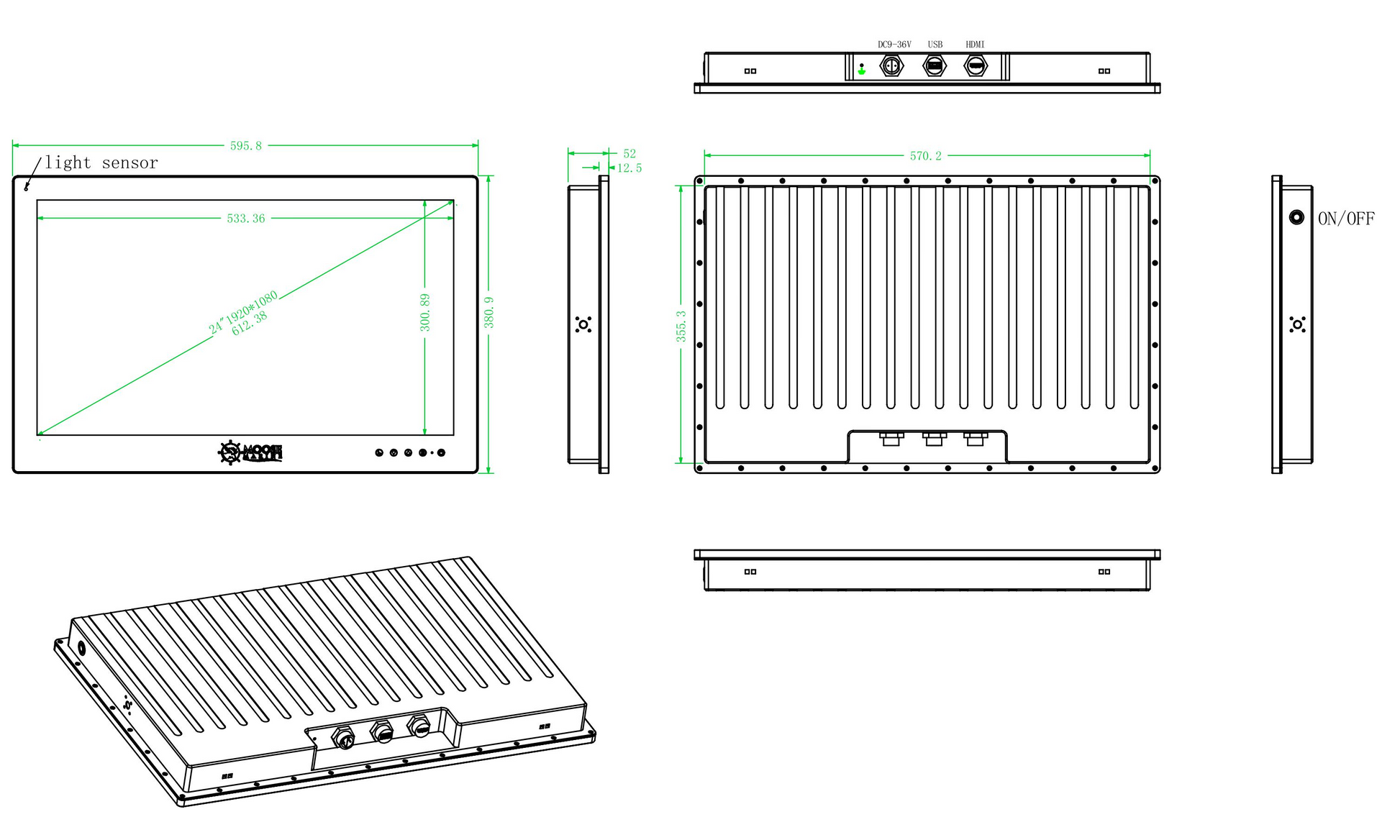 Dimensions: 595.8mm x 380.9mm x 52mm